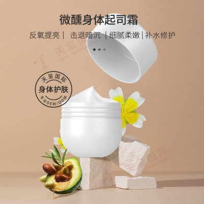 本爆款身体霜OEM产品选用进口天然植物油脂,能有效渗入肌底润护肌肤,搭配两大专利成分,舒缓修护肌肤,杜绝干敏;独特的起司质地,一抹即化,无厚重不油腻