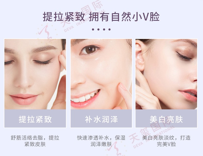核心功效:补水泽润、提拉紧致、美白淡斑、打造V脸