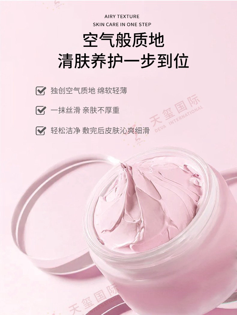 亮点/卖点:本抗糖涂抹面膜贴牌加工加入烟酰胺等多种明星成分,集清洁、养肤于一身,独创空气质地,绵软轻薄亲肤;三重链路抗糖化,无惧肌肤衰老