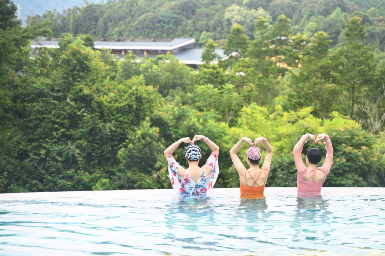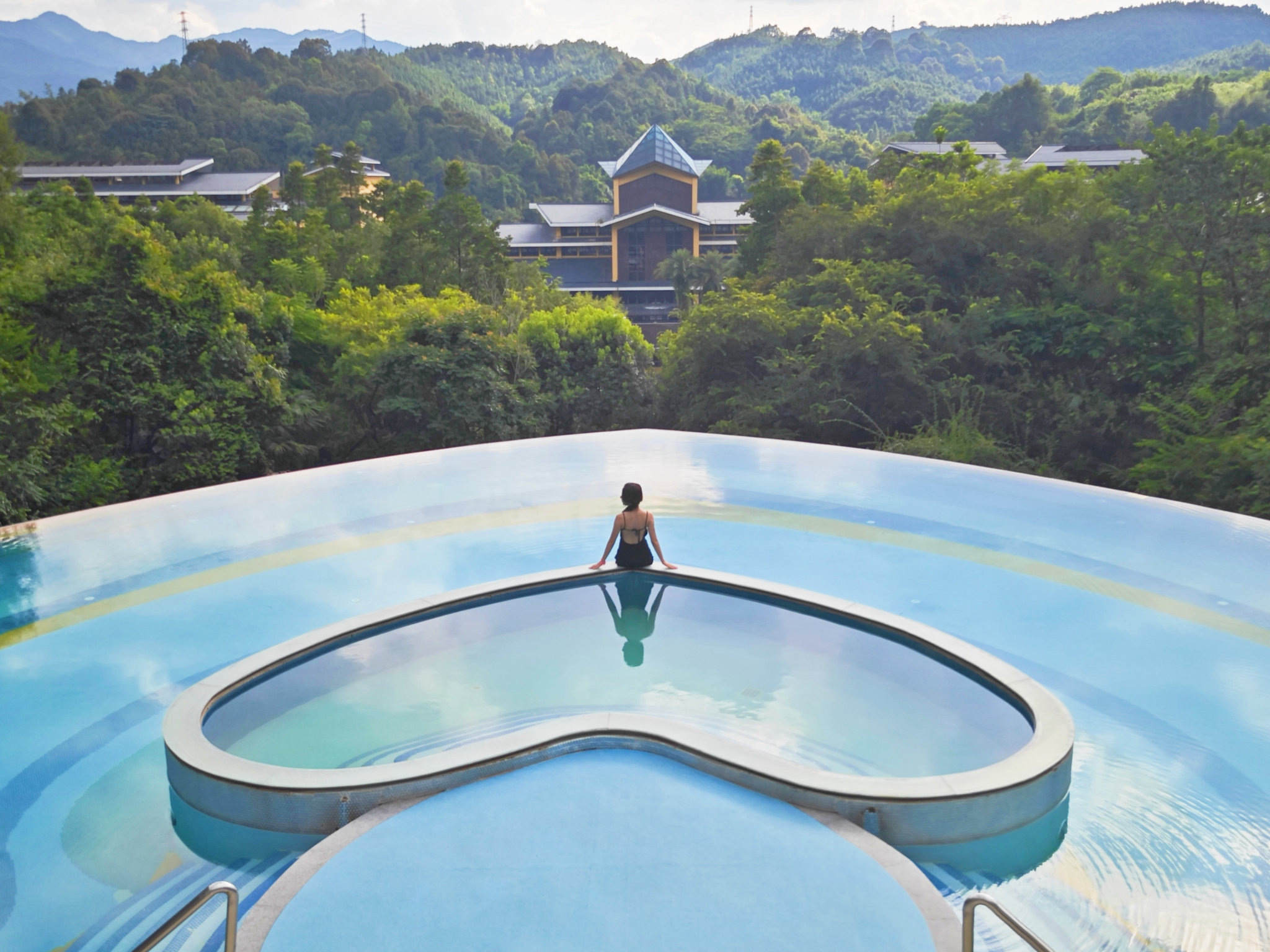 由世界著名华人设计大咖操刀设计的悬于山谷之间,毗邻畔山的悬崖心型泳池,是世界上少有的独特形状的无边泳池。以“心”为设计概念,以爱立意,创造富有生命力的浪漫泳池,吸引小伙伴们纷纷打卡拍大片!