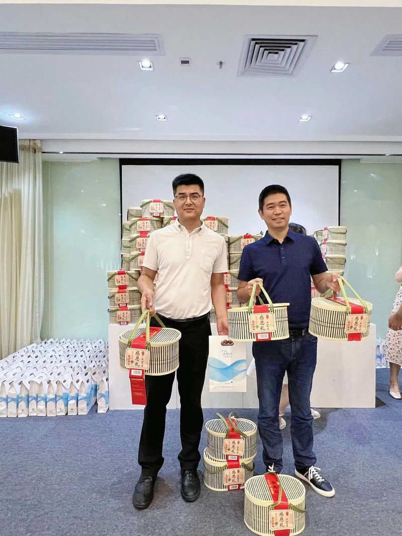 ◆周攀峰总裁和黄丹总监为同事们分发礼品