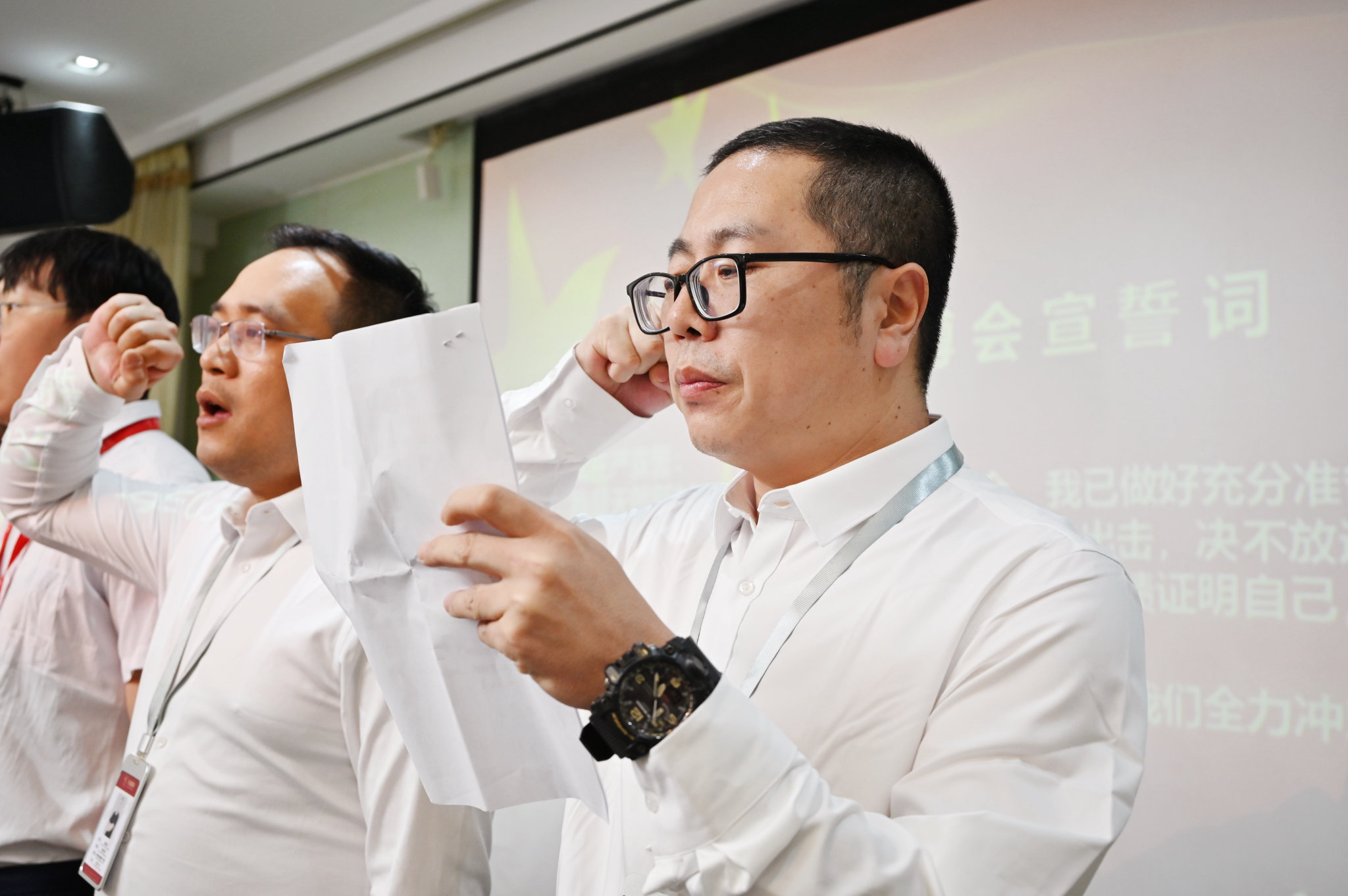 一份份注入坚定信念的军令状与任务书,镌刻着天玺国际美业精英们的责任与担当,一句句激情澎湃的誓师口号声中,印证着大家激燃奋战的斗志与干劲。