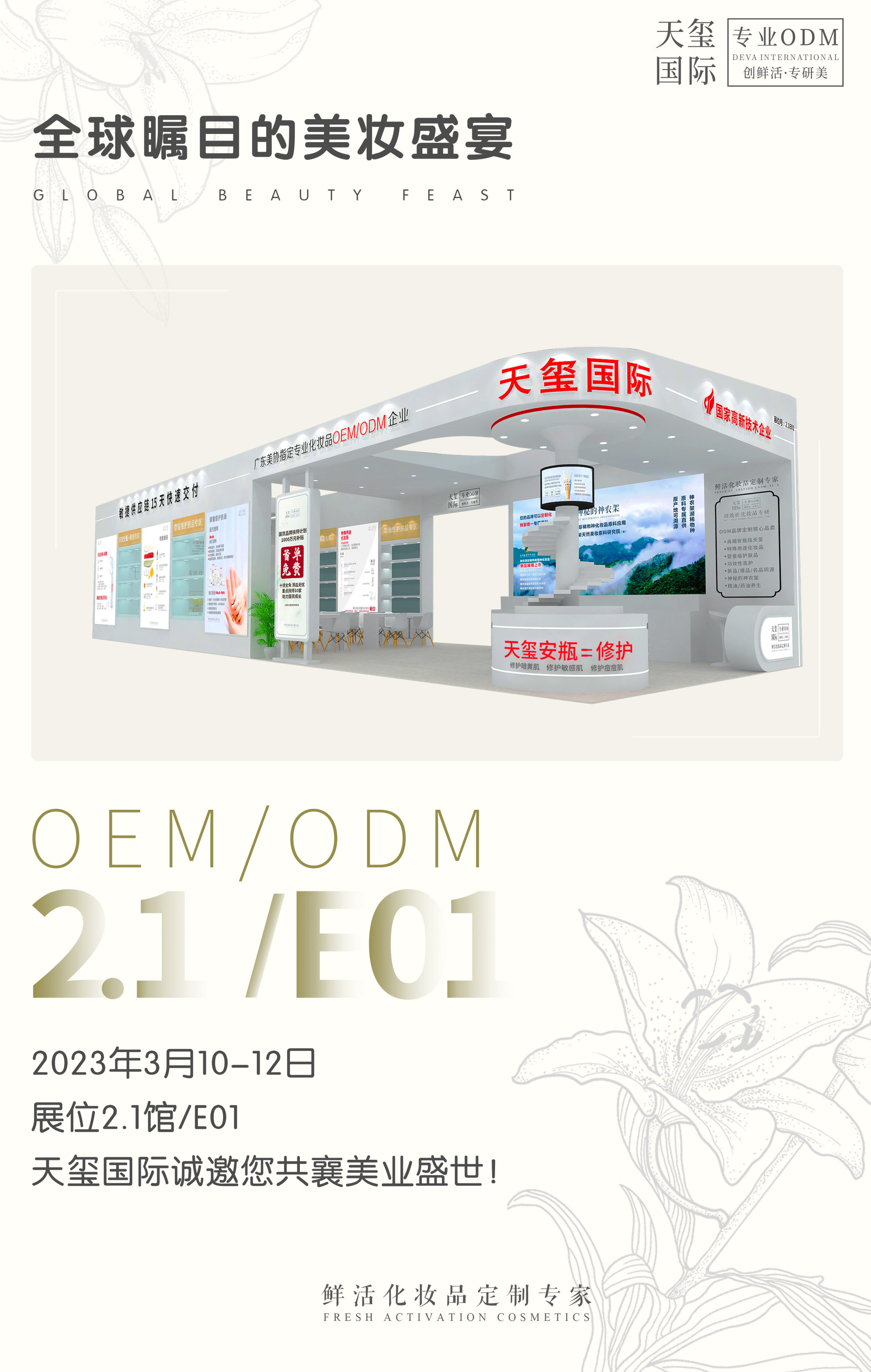第60届美博会,天玺人将以“爱拼就能赢”的自信,舍我其谁的气概,只争朝夕的拼劲,追求卓越的志向,勇立潮头拼主业,心想事成创佳绩,赢得开门红,决胜新一年,待到春华秋实岁物丰成时,让我们再相聚,共举杯,倶欢颜,庆丰年!