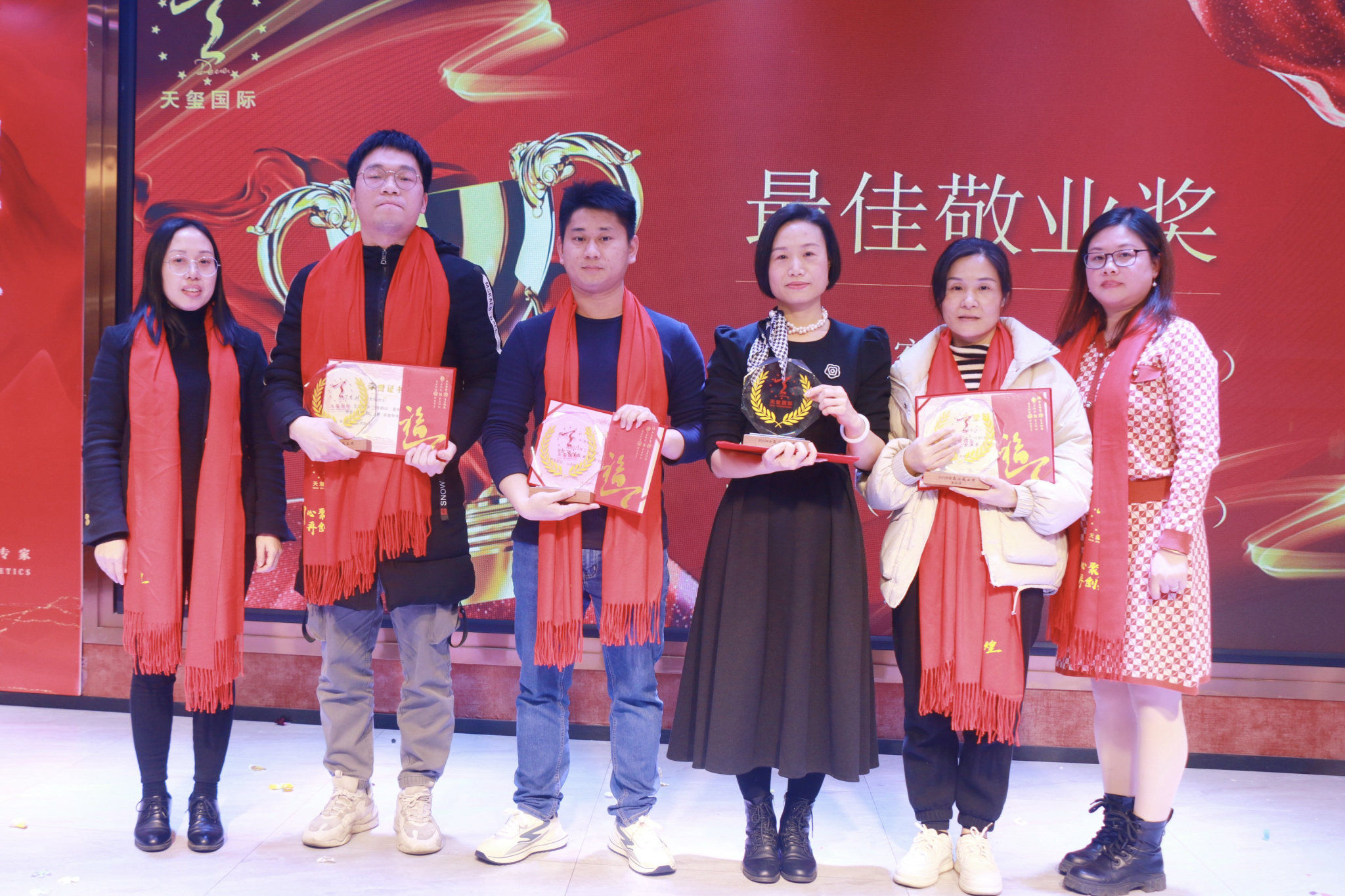 天玺国际年会的文艺汇演节目,都是天玺小伙伴自己编排的。天玺人不止会和护肤品打交道,也是多才多艺的!多个精彩表演,创意十足,让整场晚会气氛火热,高潮迭起;设置的各项大奖更是给广大员工和嘉宾带来了满满的惊喜,引发欢呼声与掌声不断!