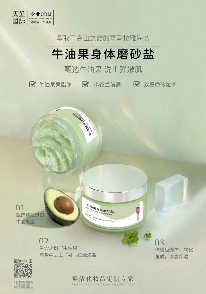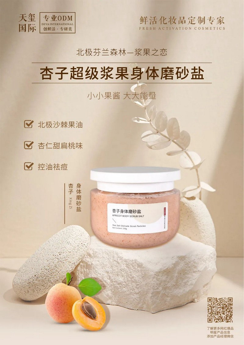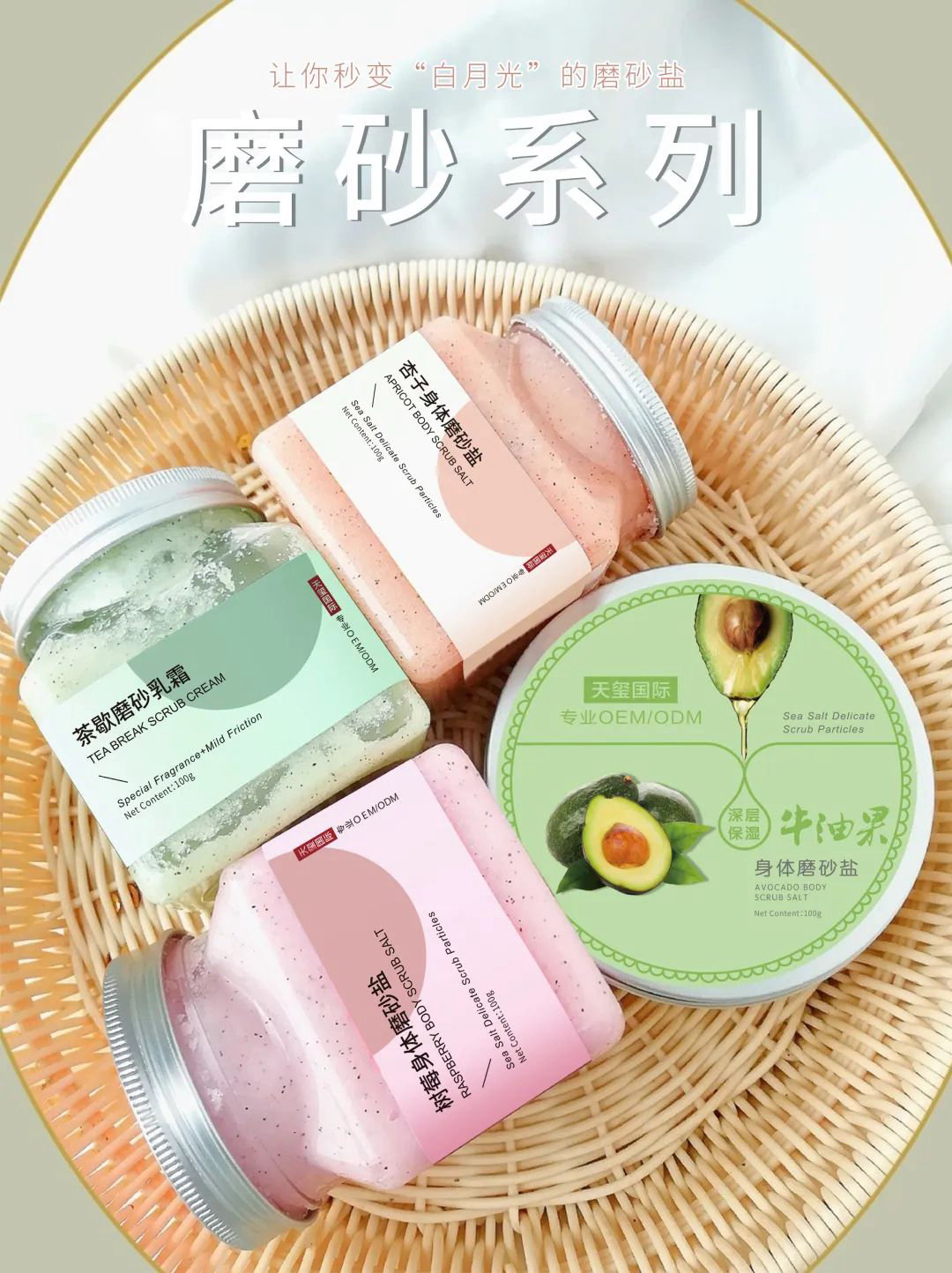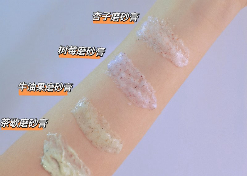 1. 取适量磨砂膏,用手打圈按摩全身,尤其是手肘膝盖以及脚裸处
