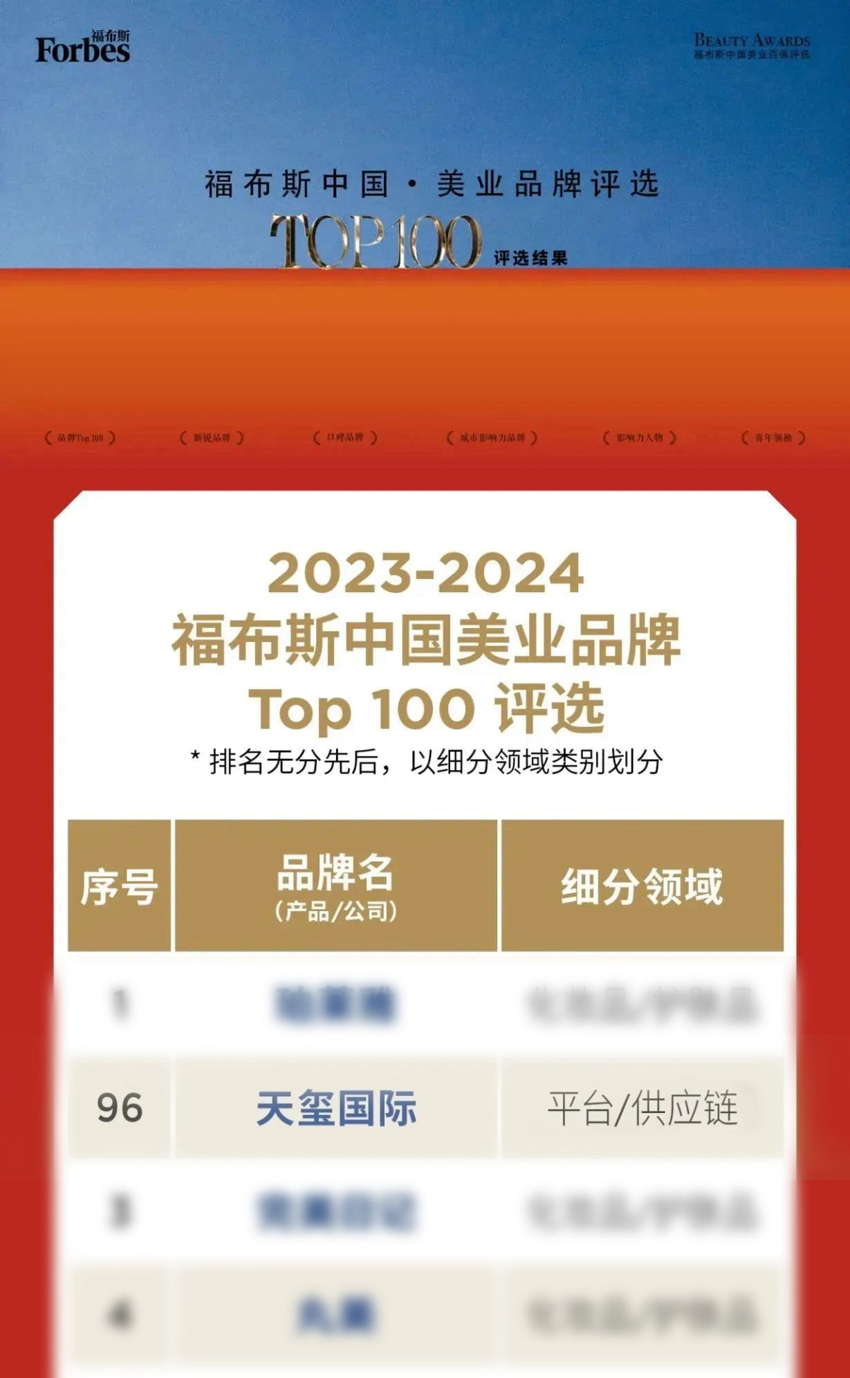 恭喜天玺国际荣获“2023-2024福布斯中国美业品牌Top100”!