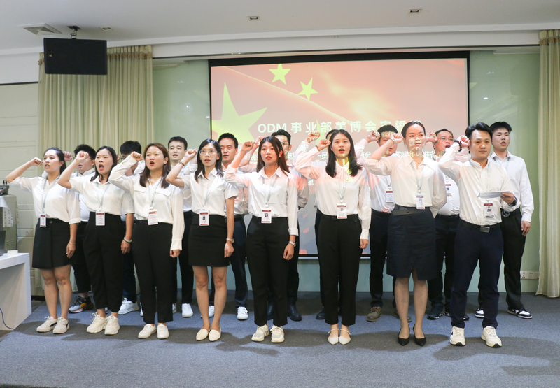 出征在即,周攀峰总裁在大会上表示,这几年来,天玺国际合作客户质量越来也好,新锐客户和重量级客户相继来到天玺国际总部参观洽谈合作,这是非常令人激动的事情。各部门认真备战已有两个月,所有事情都踩着计划目标在走。在九月美博会上,我们将以十二分的热情和专业迎接美博会,我们天玺人身后有强大的后盾,放心大胆往前奋进!天玺的战友们加油!