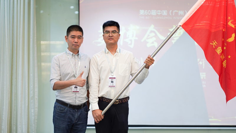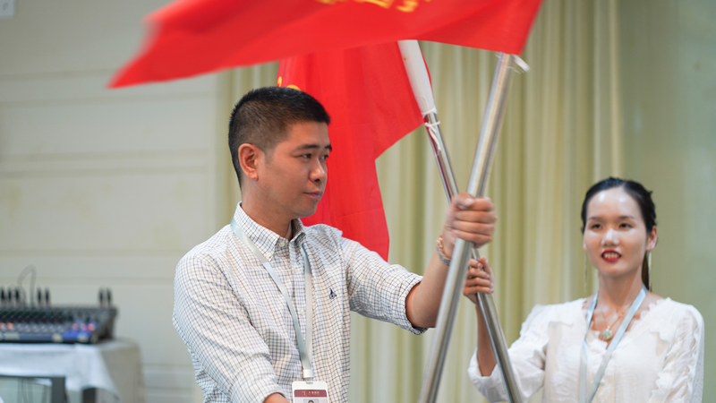 天玺国际总裁周攀峰先生把一面面代表使命、责任和承诺的旗帜传递到各事业部负责人手中。