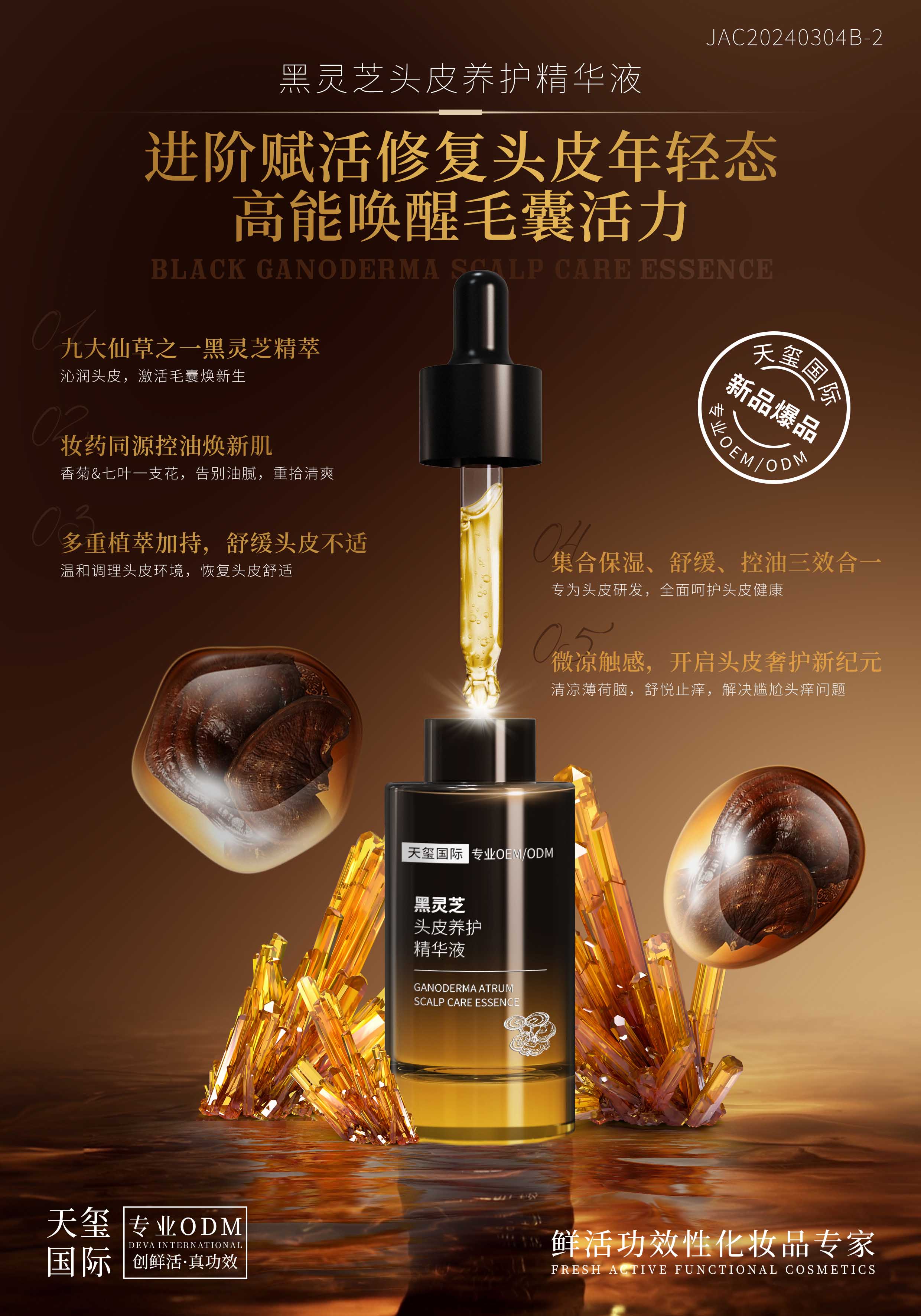 天玺黑灵芝头皮护理精华液绝非简单的成分堆砌,而是基于对头皮微生态和问题根源的深刻理解,运用专利技术打造的“面护级”头皮深度养护方案: