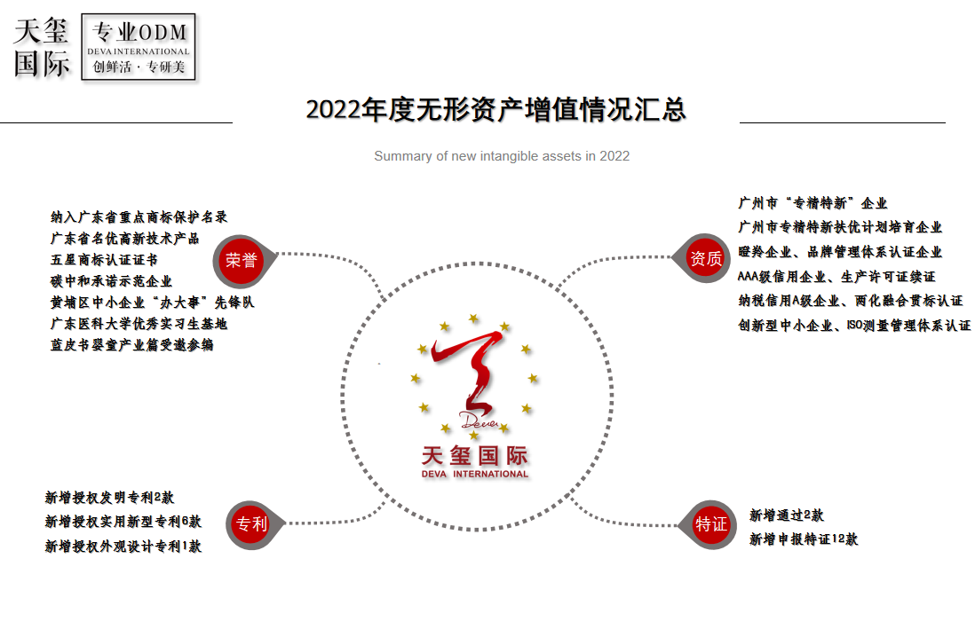 这一年,天玺国际迈着坚实的脚步,收获满载荣誉的2022年:新增授权专利9款,新增申报特证16款,新增授权荣誉7项,新增授权资质10项等。