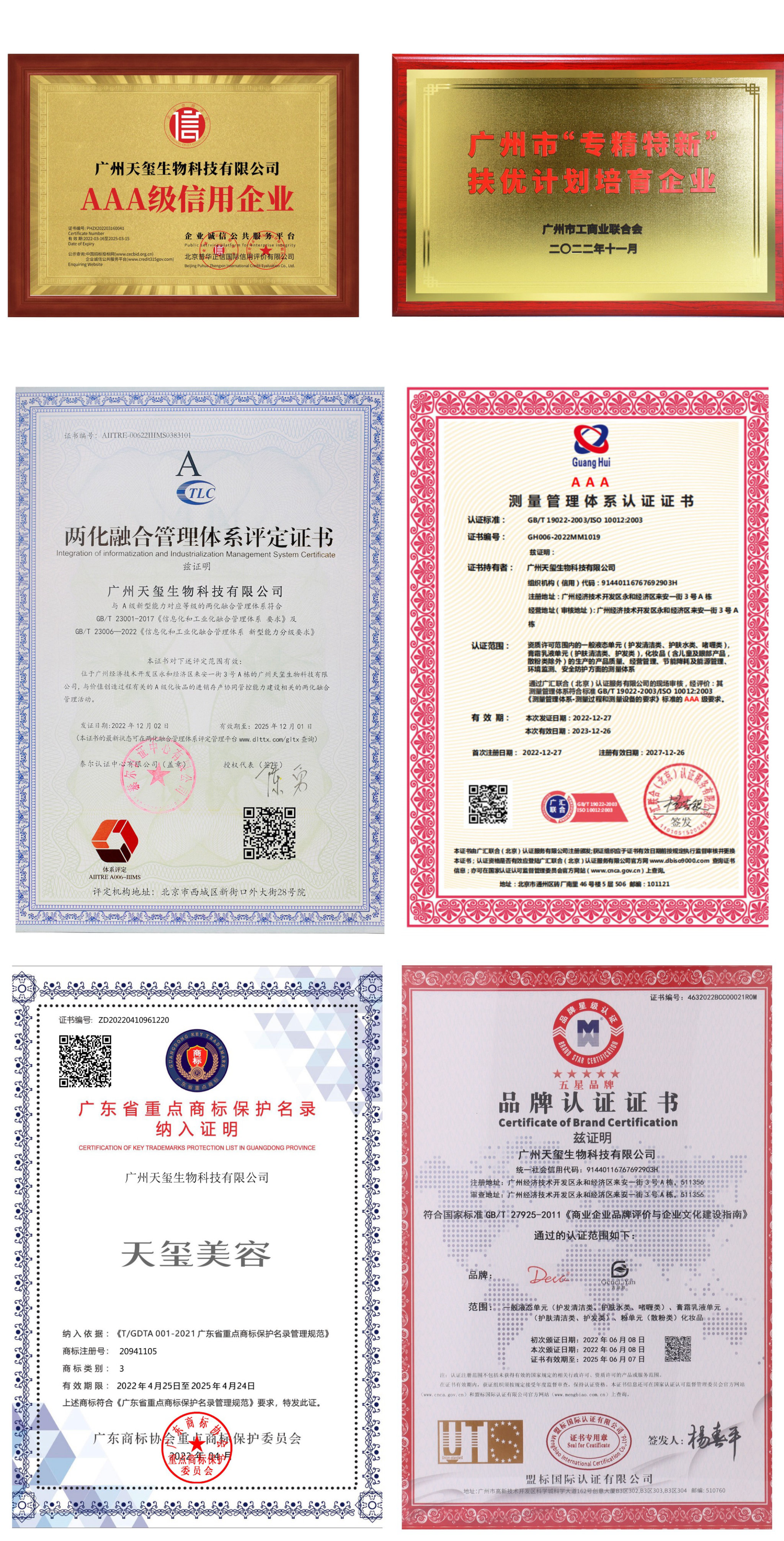 天玺国际以锐意进取的发展精神,2022年又在企业“荣誉墙”上增添了许多令人自豪的印记:广东省专精特新企业、广州市专精特新扶优计划培育企业、黄埔区“瞪羚企业”、品牌管理体系认证企业、两化融合贯标认证创新型中小企业、ISO测量管理体系认证、纳入广东省重点商标保护名录、广东省名优高新技术产品、五星商标认证证书、蓝皮书婴童产业篇受邀参编...