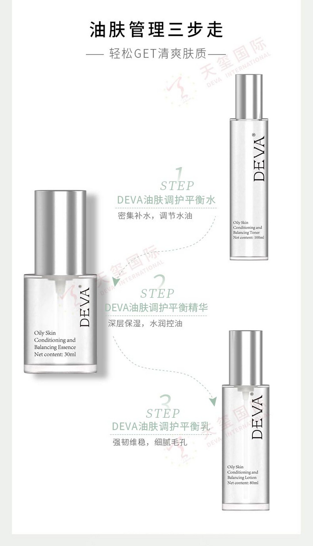 该产品为控油三件套OEM产品展示,并非成品现货可批发或单独购买!我司也有其产品他护肤品套装代加工及其他品类化妆品OEM/ODM,产品品类及功效众多无法一一展示。如需了解更多化妆品贴牌可直接联系我司客服人员,感谢您的信赖与选择!