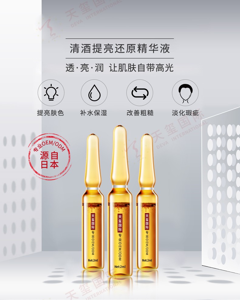 产品名称:清酒提亮还原精华液代加工-神仙水同款成分,让肌肤透亮润