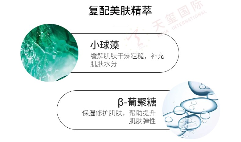 核心成分:1、明星补水成分:多重玻尿酸 2、高人气补水成分:小球藻 3、大牌同款修护成分:β-葡聚糖