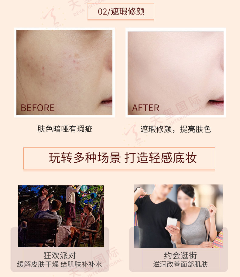 核心功效:提亮肤色、隐形毛孔、遮瑕修颜、轻薄透气