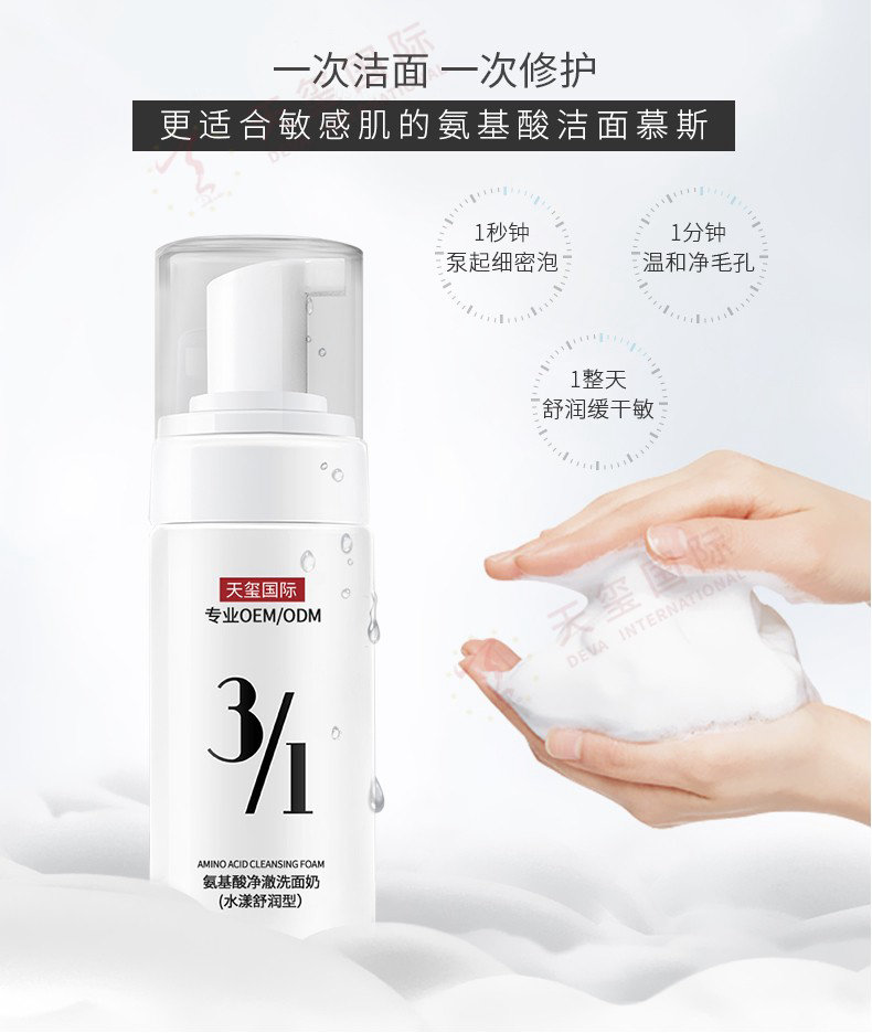 该产品为氨基酸洗面奶贴牌加工产品,并非现货可批发或单独购买!同时也有其他洁面产品代加工及全类型化妆品OEM/ODM,产品品类及功效众多无法一一展示,如需了解更多护肤品代加工可直接联系我司客服人员,感谢您的信赖与选择!