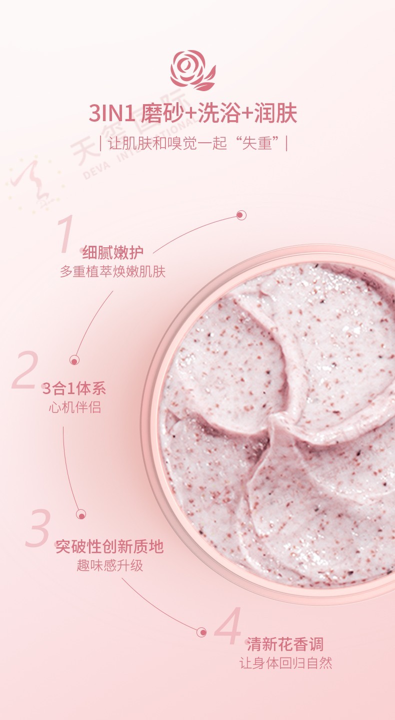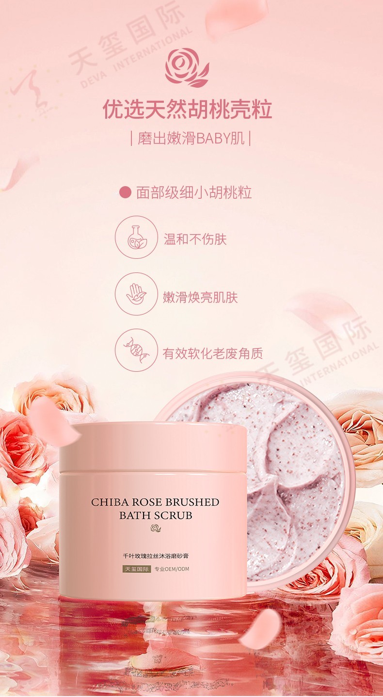 产品名称:千叶玫瑰拉丝沐浴磨砂膏-热推身体磨砂膏代加工,让肌肤和嗅觉失重
