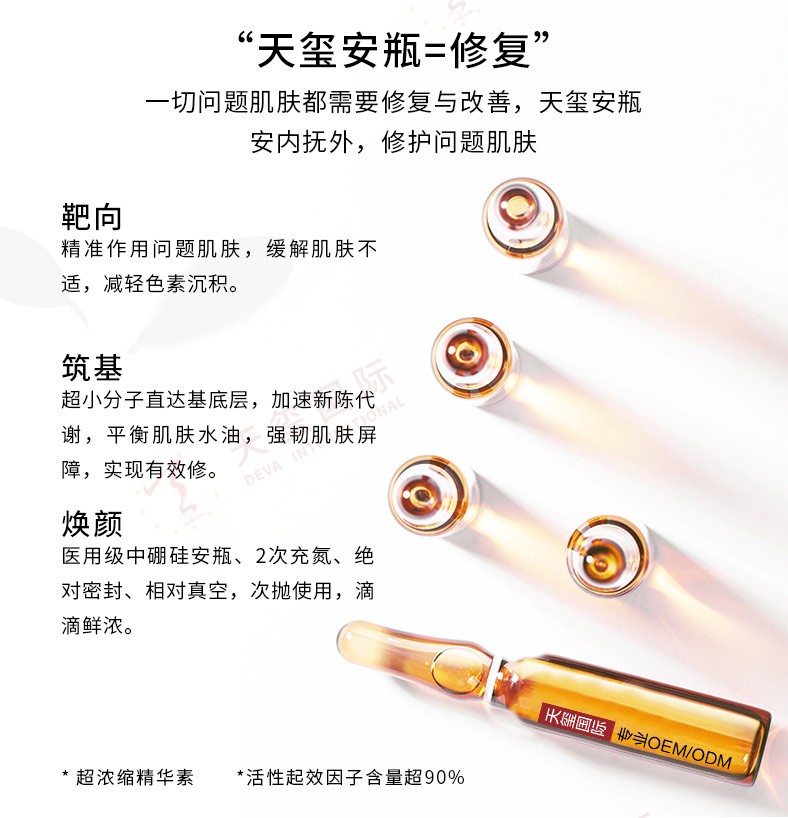 该产品为修复安瓶精华液代加工产品,并非现货可批发或单独购买!同时也有其他安瓶类产品代加工及全类型护肤品OEM/ODM,产品品类及功效众多无法一一展示,如需了解更多护肤品代加工可直接联系我司客服人员,感谢您的信赖与选择!
