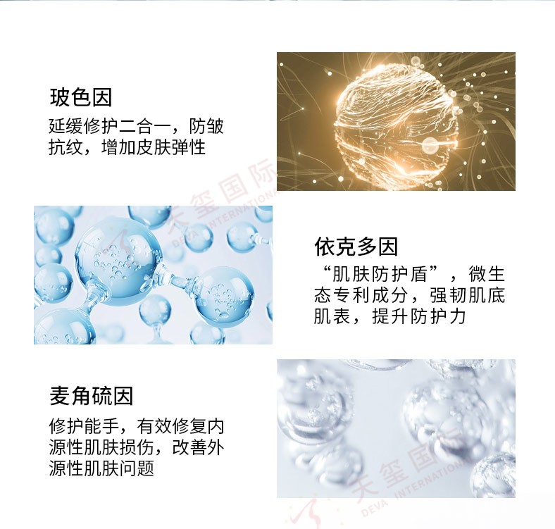 亮点/卖点:本修护安瓶精华液代加工加入明星成分玻色因,搭配依克多因和麦角硫因,平衡水油,提亮肌肤,改善粗糙,重塑幼龄肌