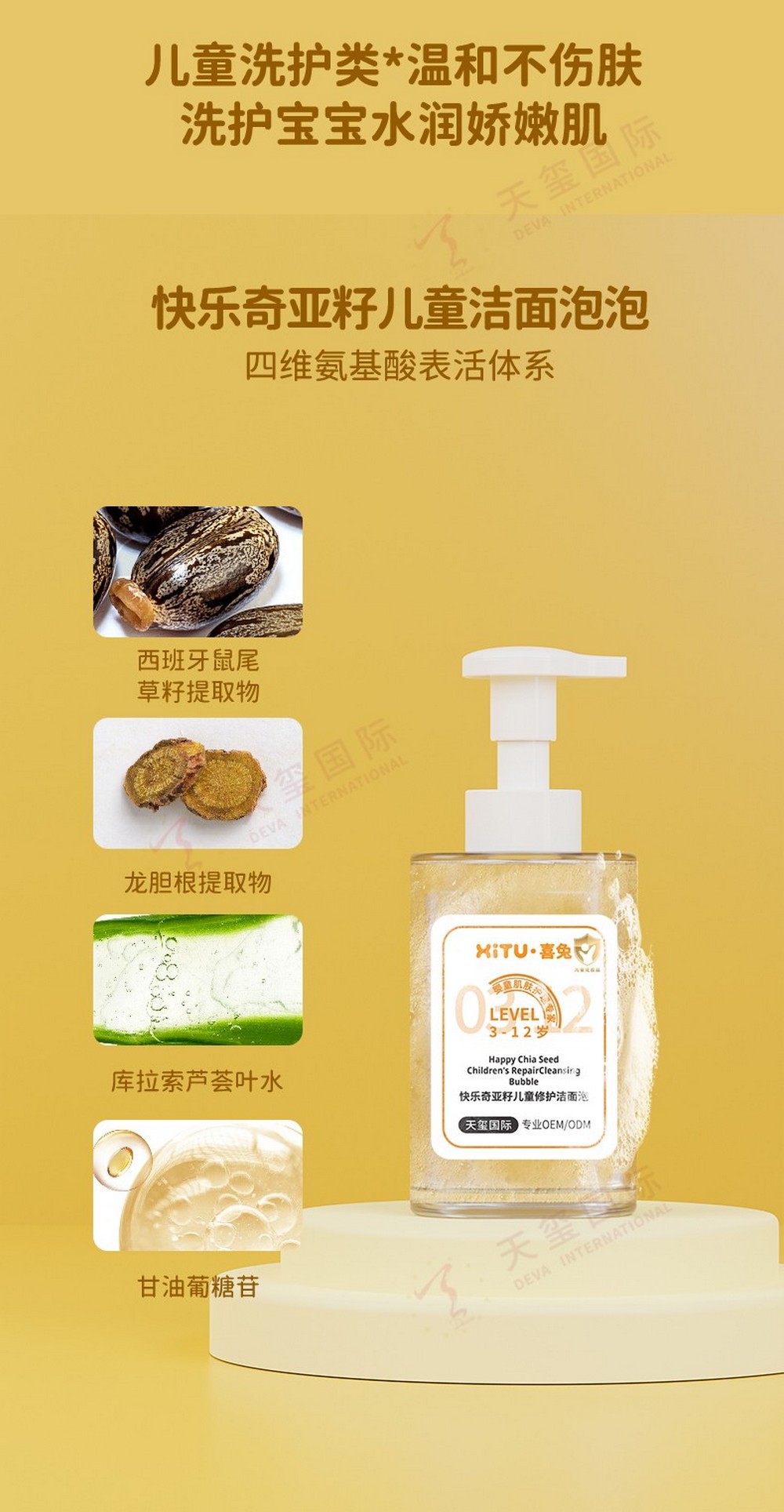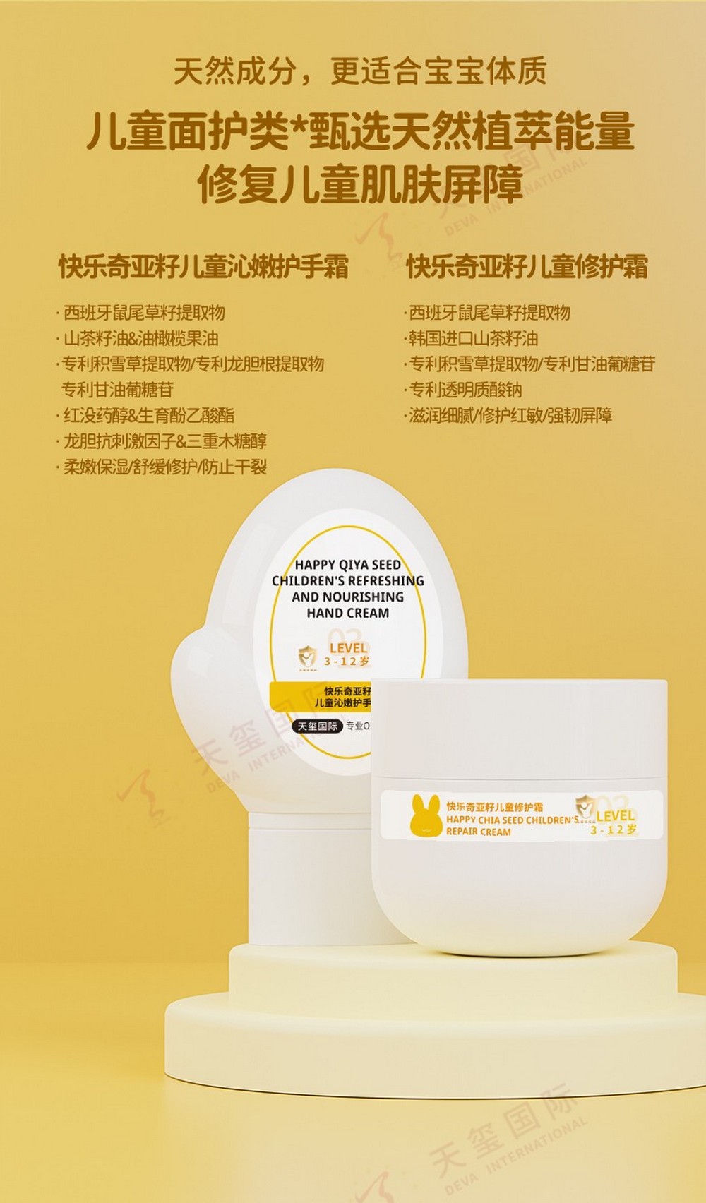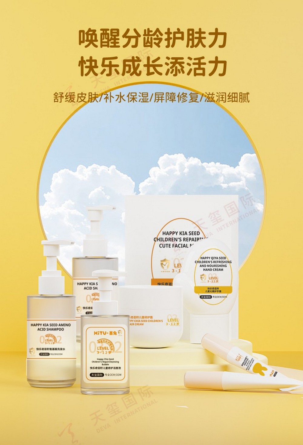 产品名称:快乐奇亚籽儿童修护系列OEM/ODM——唤醒分龄护肤力快乐成长添活力