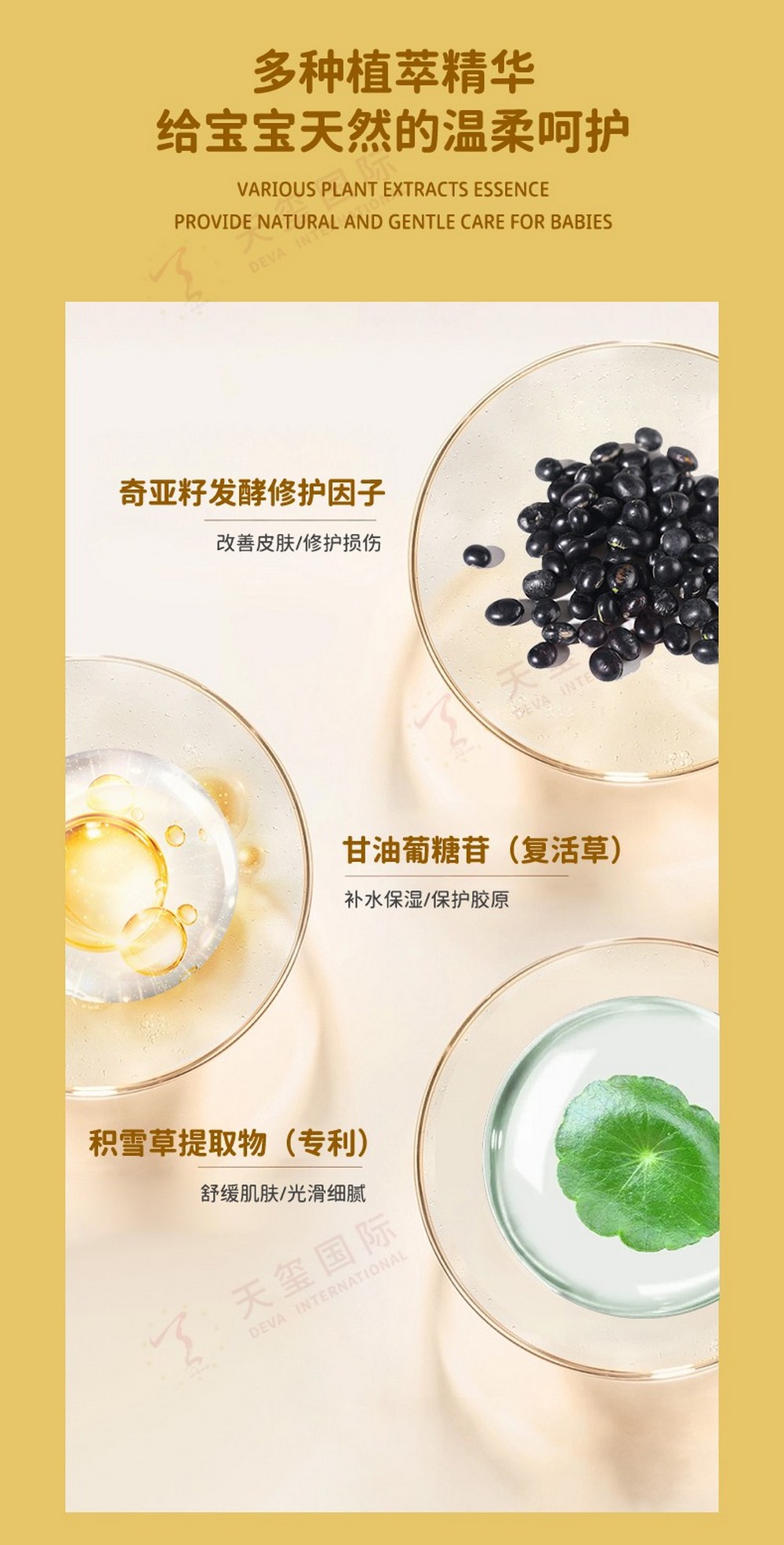 亮点/卖点:本快乐奇亚籽儿童修护系列,天然成分,更适合宝宝体质,多种植萃精华,给宝宝天然的温柔呵护,该产品为快乐奇亚籽儿童修护系列代加工产品,并非现货可批发或单独购买!同时也有其他婴童儿童产品代加工及