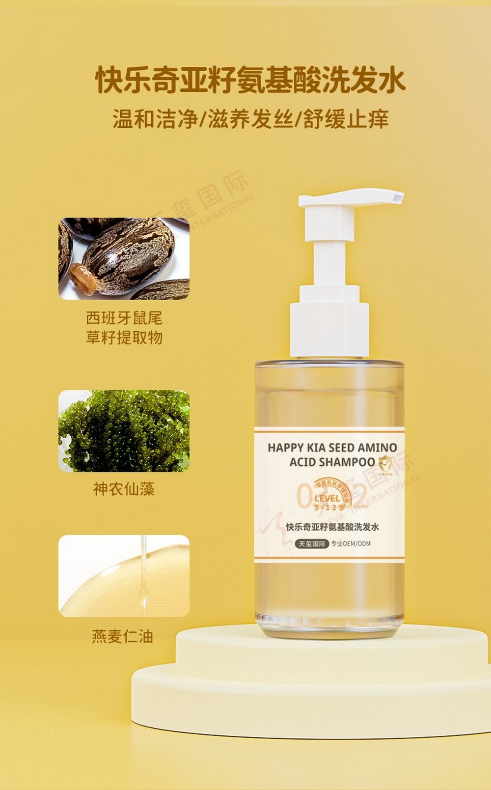 快乐奇亚籽氨基酸洗发水:西班牙鼠尾草籽提取物,神农仙藻,燕麦仁油