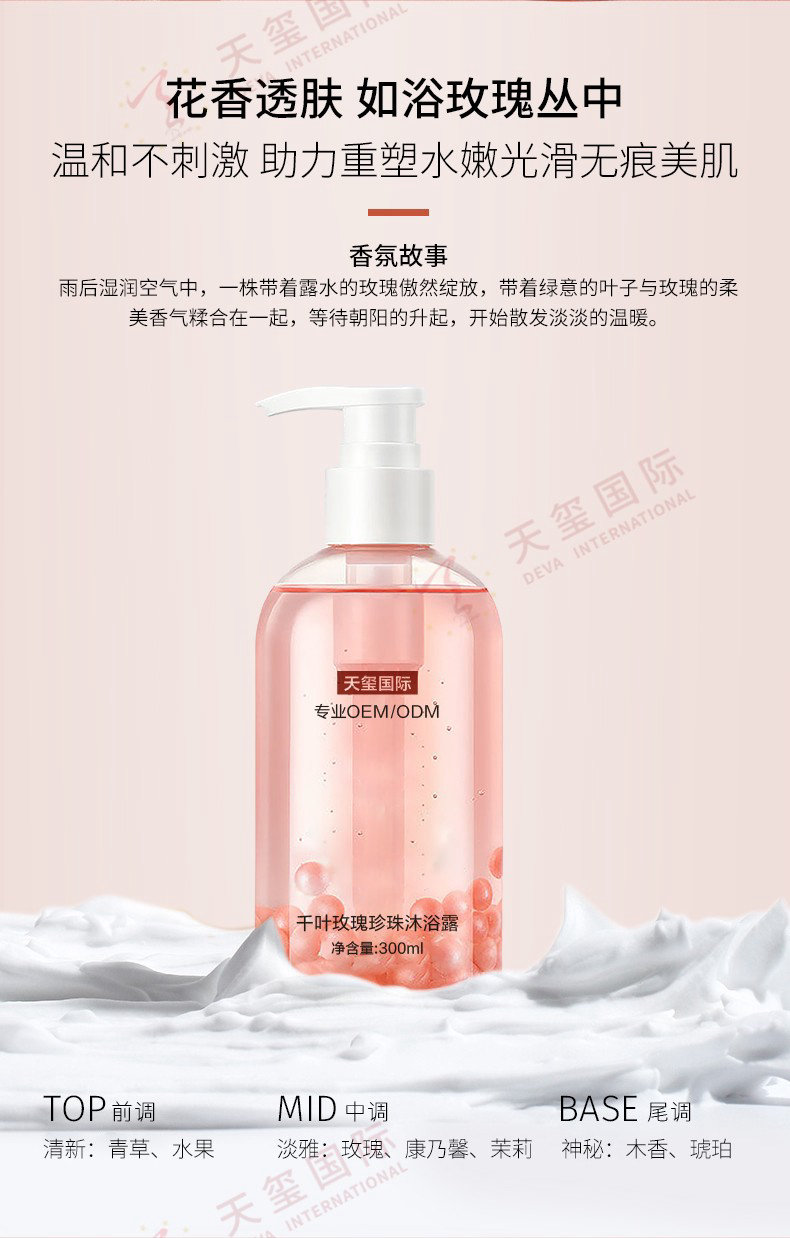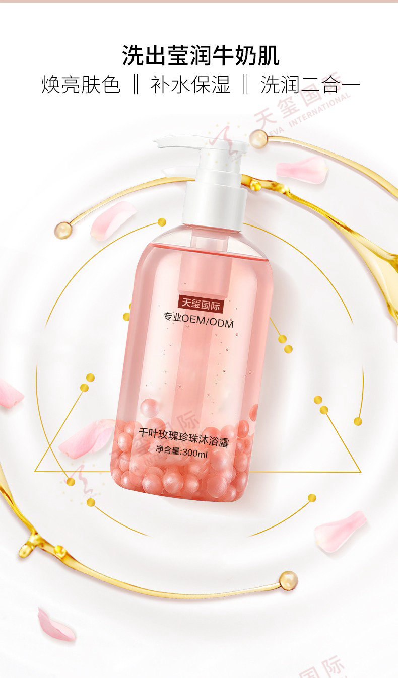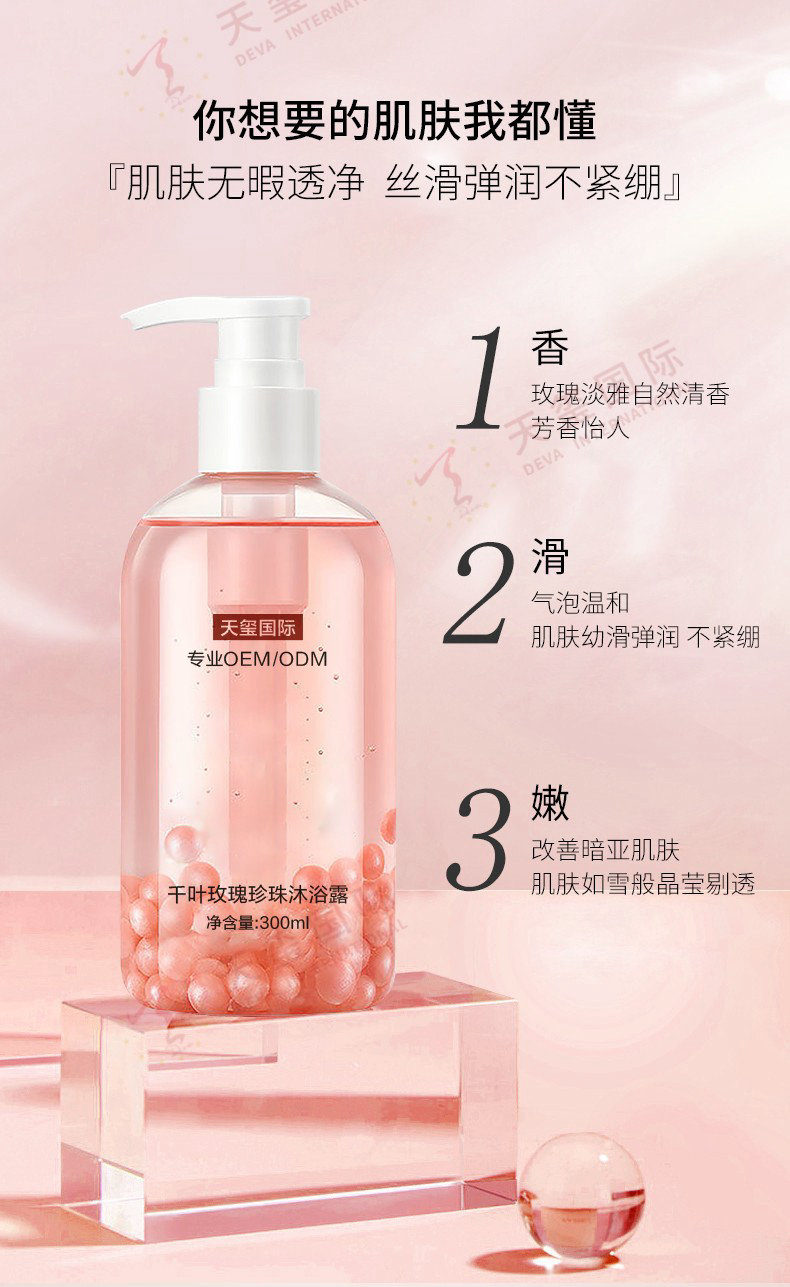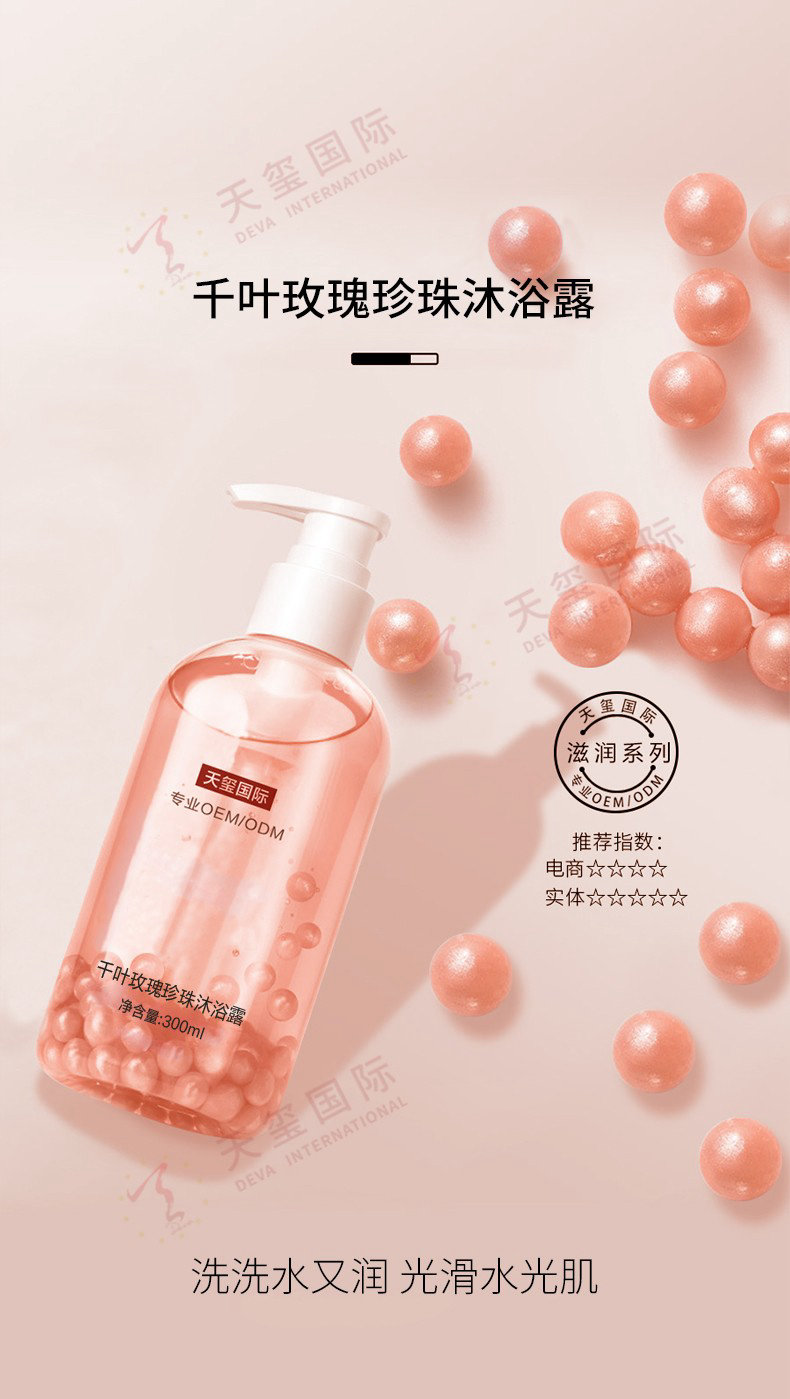 产品名称:千叶玫瑰珍珠沐浴露贴牌-爆品沐浴露,洗润二合一