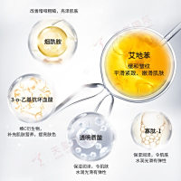 核心成分:1、明星成分:烟酰胺 2、面部抗氧女王:艾地苯 3、天玺修护成分:寡肽-1