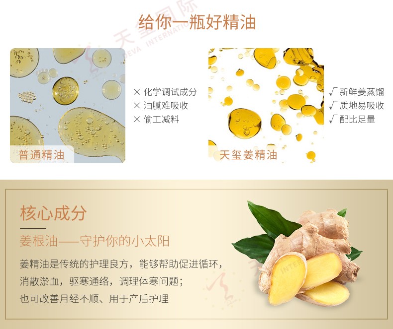 核心成分:姜根油:能够帮助促进循环、驱寒通络、调理体寒问题