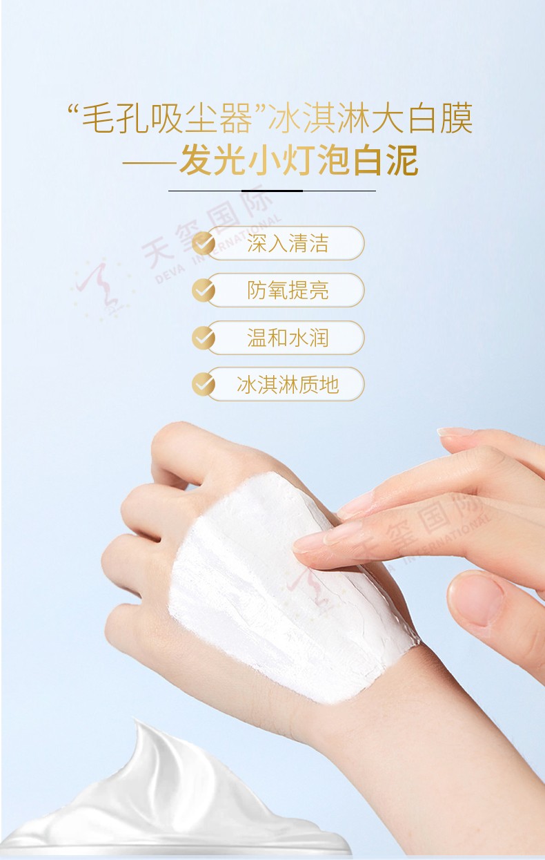 亮点/卖点:本发光小灯泡白泥,深入清洁,防氧提亮,温和水润,冰淇淋质地。该产品为发光小灯泡白泥代加工产品,并非现货可批发或单独购买!同时也有其他面膜代加工及全类型化妆品OEM/ODM,产品品类及功效众多无法一一展示,如需了解更多护肤品代加工可直接联系我司客服人员,感谢您的信赖与选择!