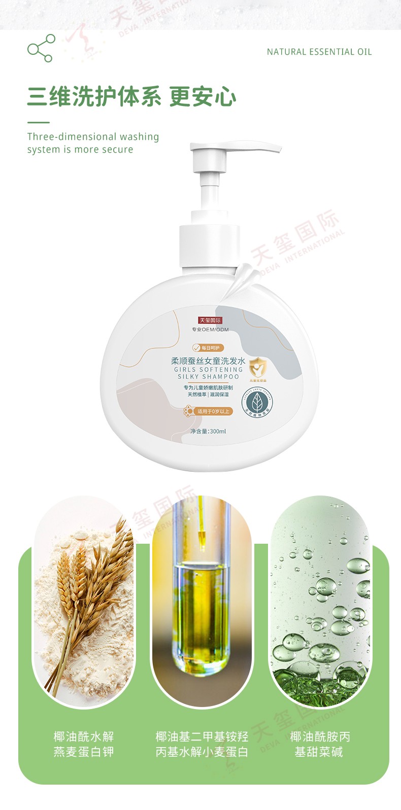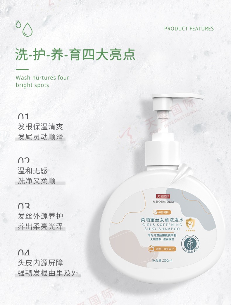 产品名称:柔顺蚕丝女童洗发水-儿童洗发水OEM,收获通话般的柔软发丝