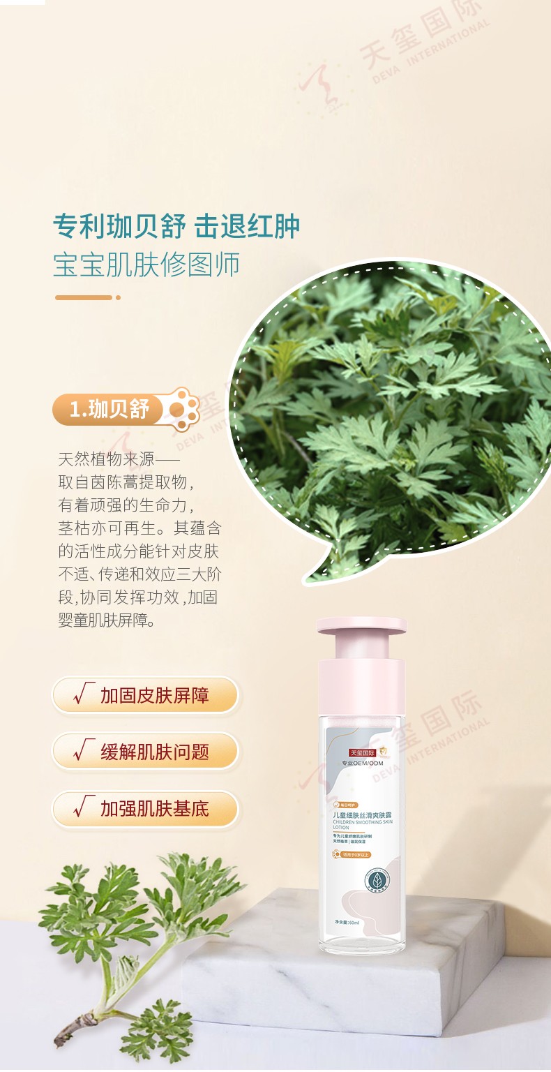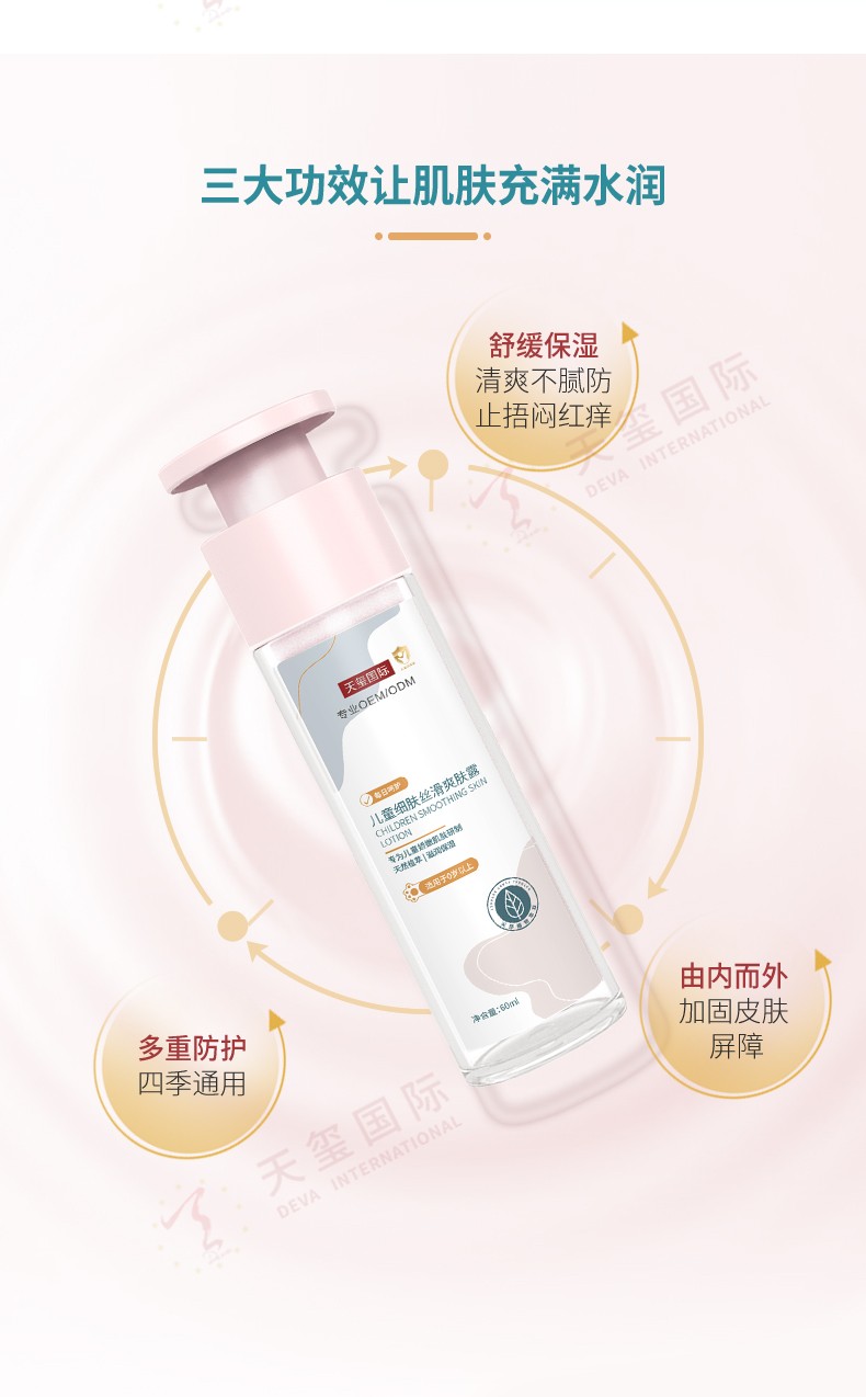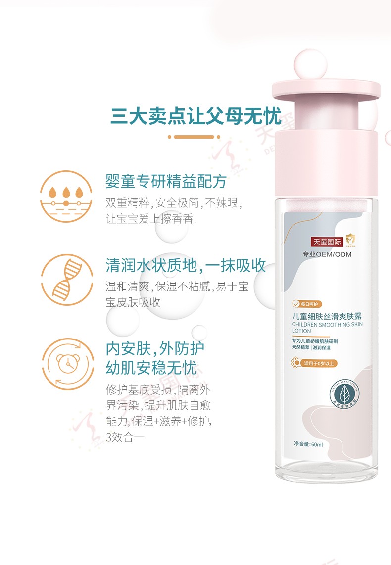 产品名称:儿童细肤丝滑爽肤露-儿童润肤露OEM,婴童护肤品专研