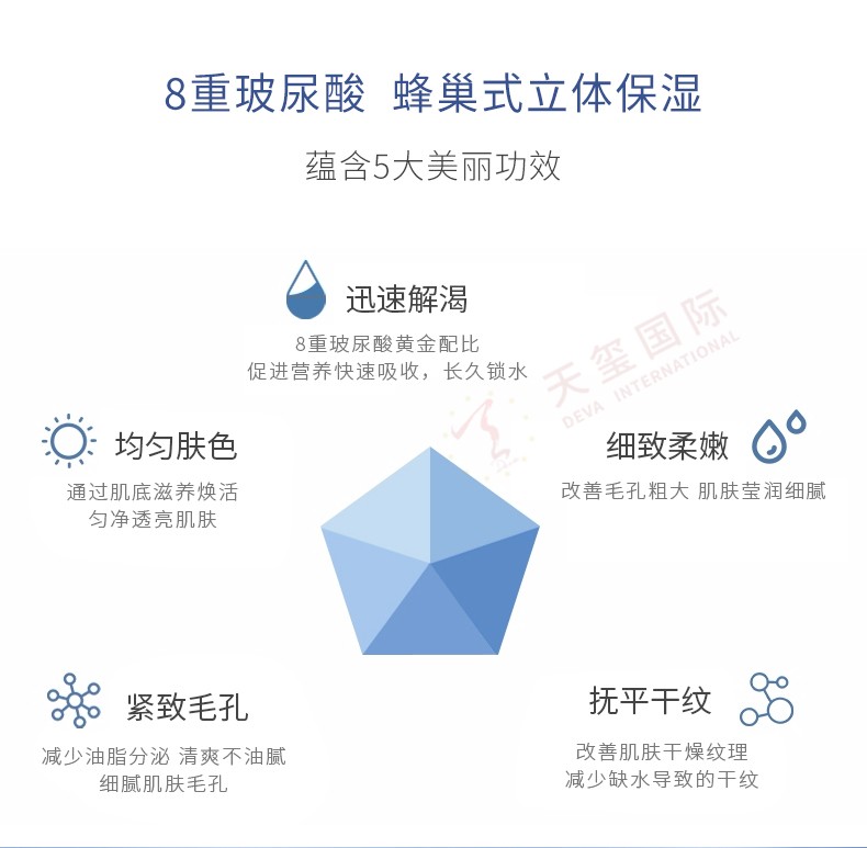 核心功效:密集补水、层层润泽、立体保湿、水润修护