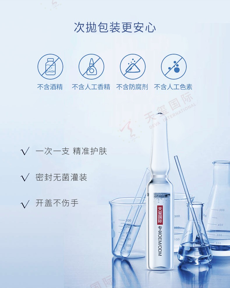 该产品为补水安瓶产品,并非现货可批发或单独购买!同时也有其他安瓶类产品代加工及全类型化妆品OEM/ODM,产品品类及功效众多无法一一展示,如需了解更多护肤品代加工可直接联系我司客服人员,感谢您的信赖与选择!