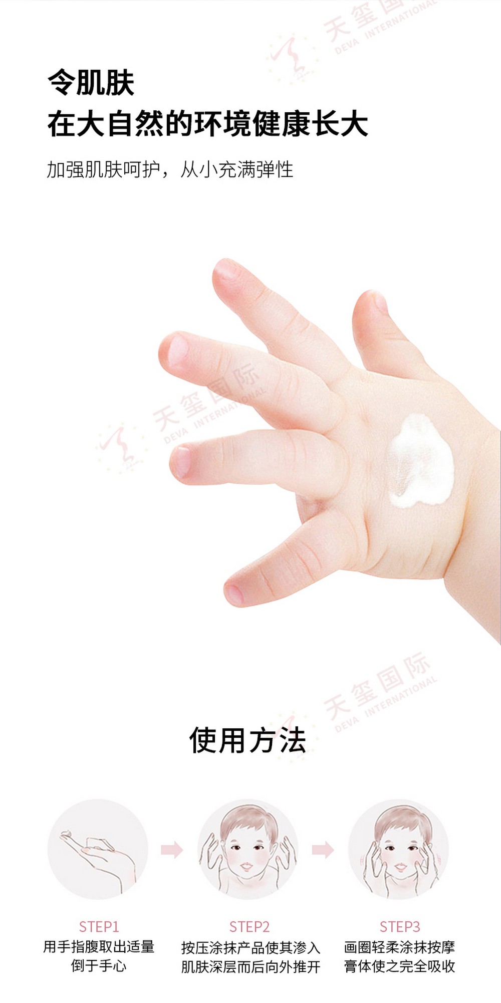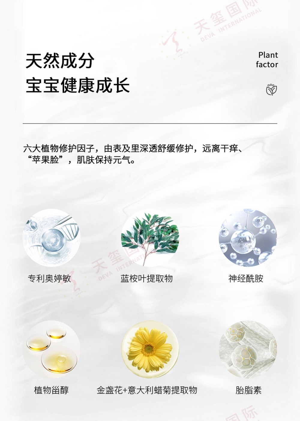 亮点/卖点:本婴童面纱霜OEM/ODM臻选6大植物修护因子,由表及里深透舒缓修护,为幼嫩的肌肤建立屏障,抵御外界刺激,精心呵护宝宝肌肤