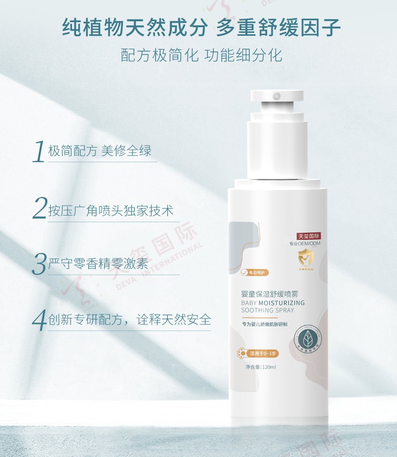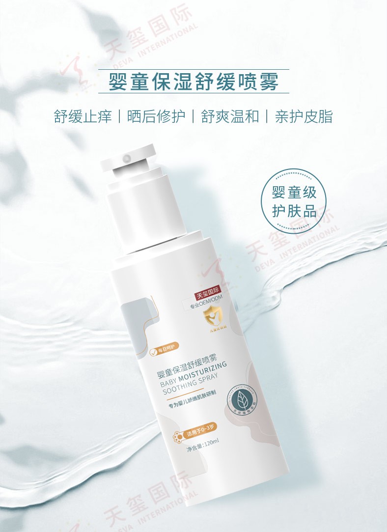 产品名称:婴童保湿舒缓喷雾代加工-多重纯植物舒缓因子,全面呵护宝宝肌