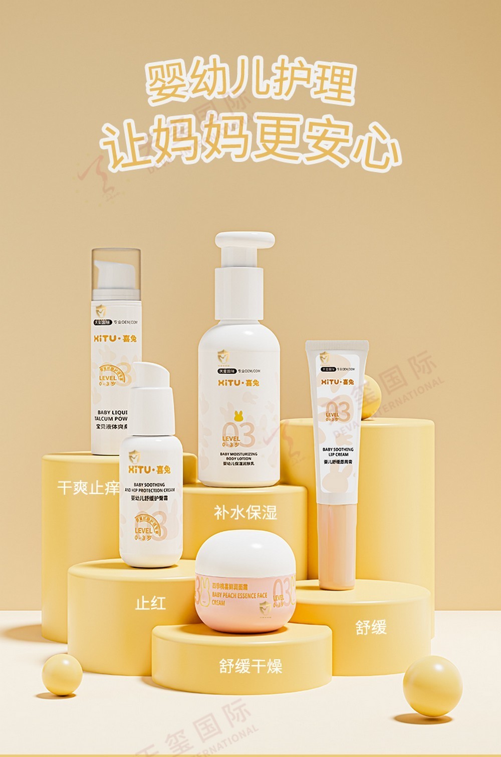 该产品为婴童系列代加工产品展示,并非成品现货可批发或单独购买!我司也有其他婴童护肤品代加工及其他品类化妆品OEM/ODM,产品品类及功效众多无法一一展示如需了解更多化妆品贴牌可直接联系我司客服人员,感谢您的信赖与选择!