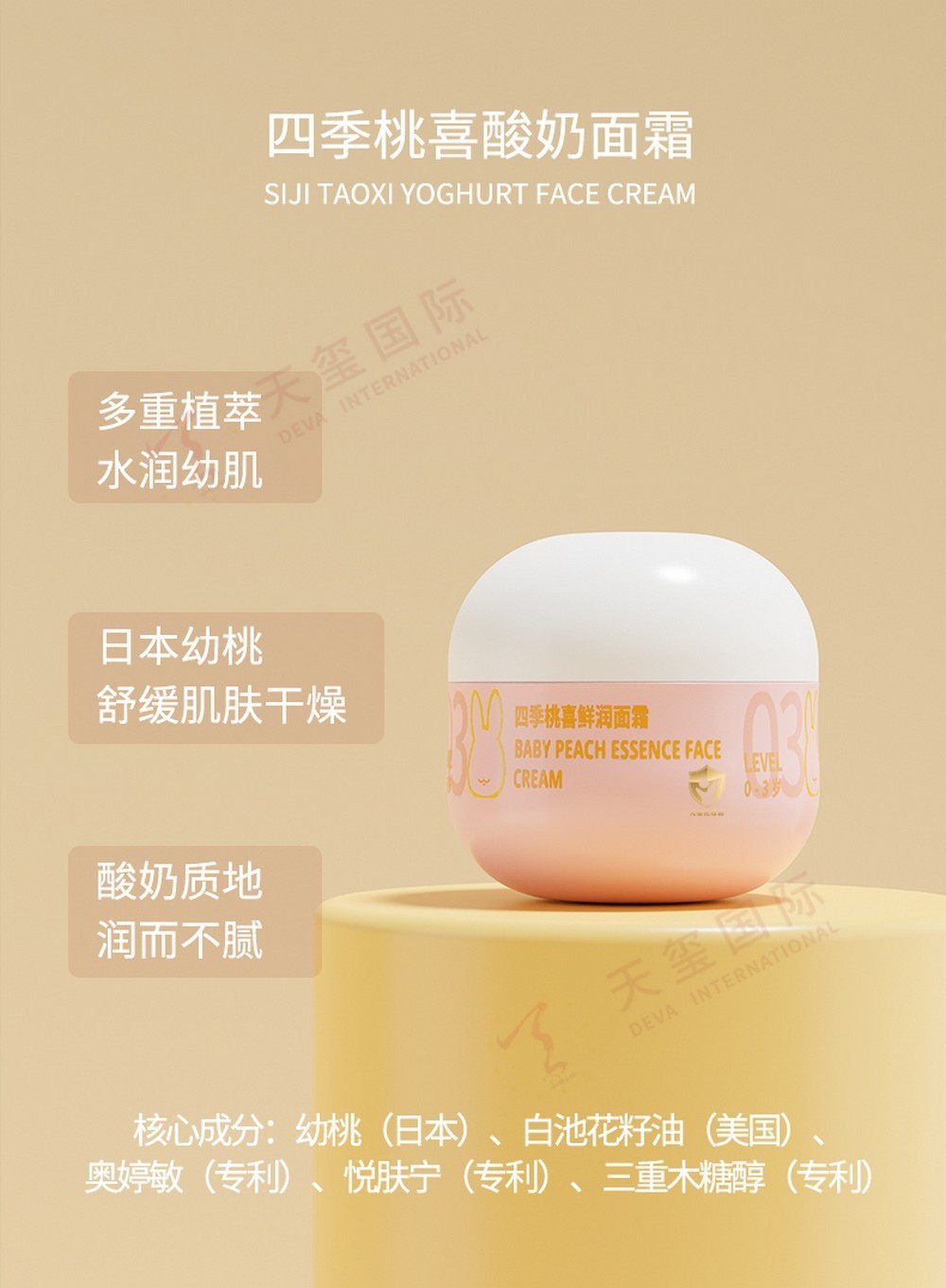 四李桃喜酸奶面霜:多重植萃,水润幼肌;日本幼桃,舒缓肌肤干燥;酸奶质地,润而不腻