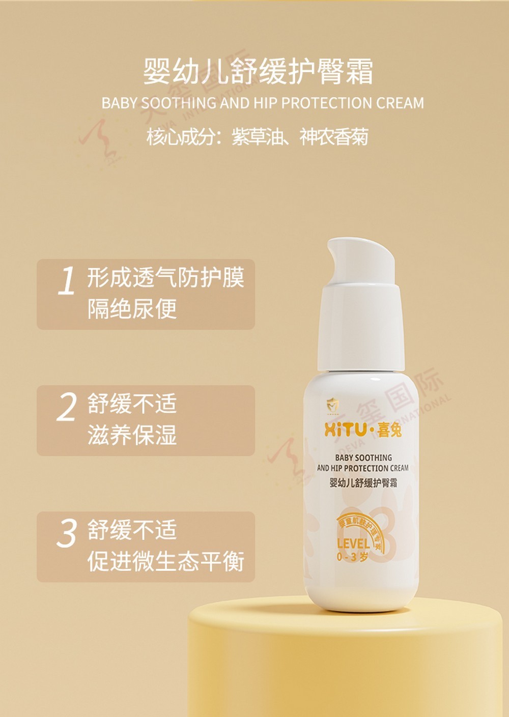 婴幼儿舒缓护臀霜:形成透气防护膜,隔绝尿便;舒缓不适,滋养保湿;舒缓不适;促进微生态平衡