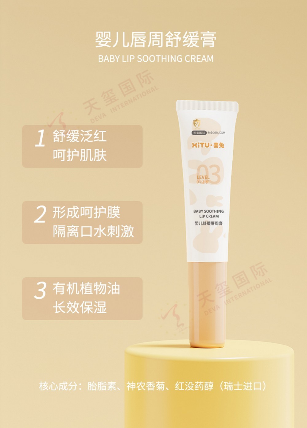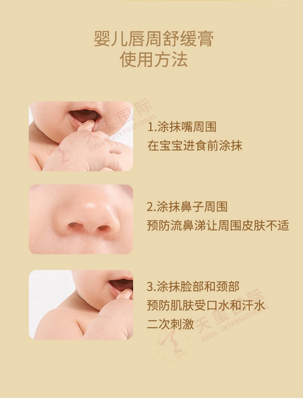 婴儿唇周舒缓膏:胎脂素、神农香菊、红没药醇(瑞士进口)