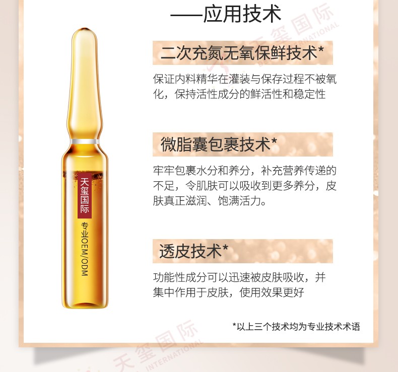 该产品为安瓶OEM产品,并非现货可批发或单独购买!同时也有其他安瓶类产品代加工及全类型护肤品OEM/ODM,产品品类及功效众多无法一一展示,如需了解更多护肤品代加工可直接联系我司客服人员,感谢您的信赖与选择!