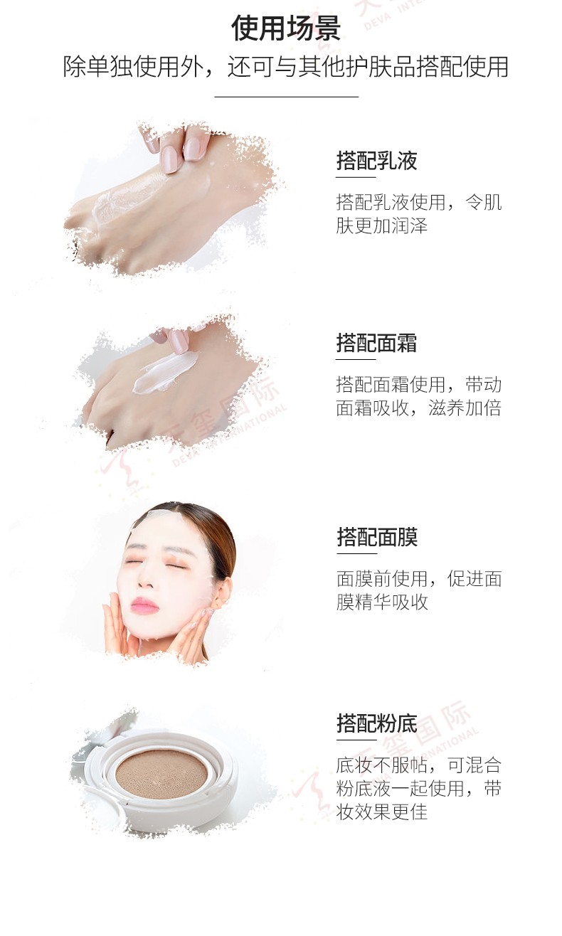 核心成分:1、大牌贵妇防氧成分:高浓二裂酵母 2、高保湿成分:5D小分子玻尿酸