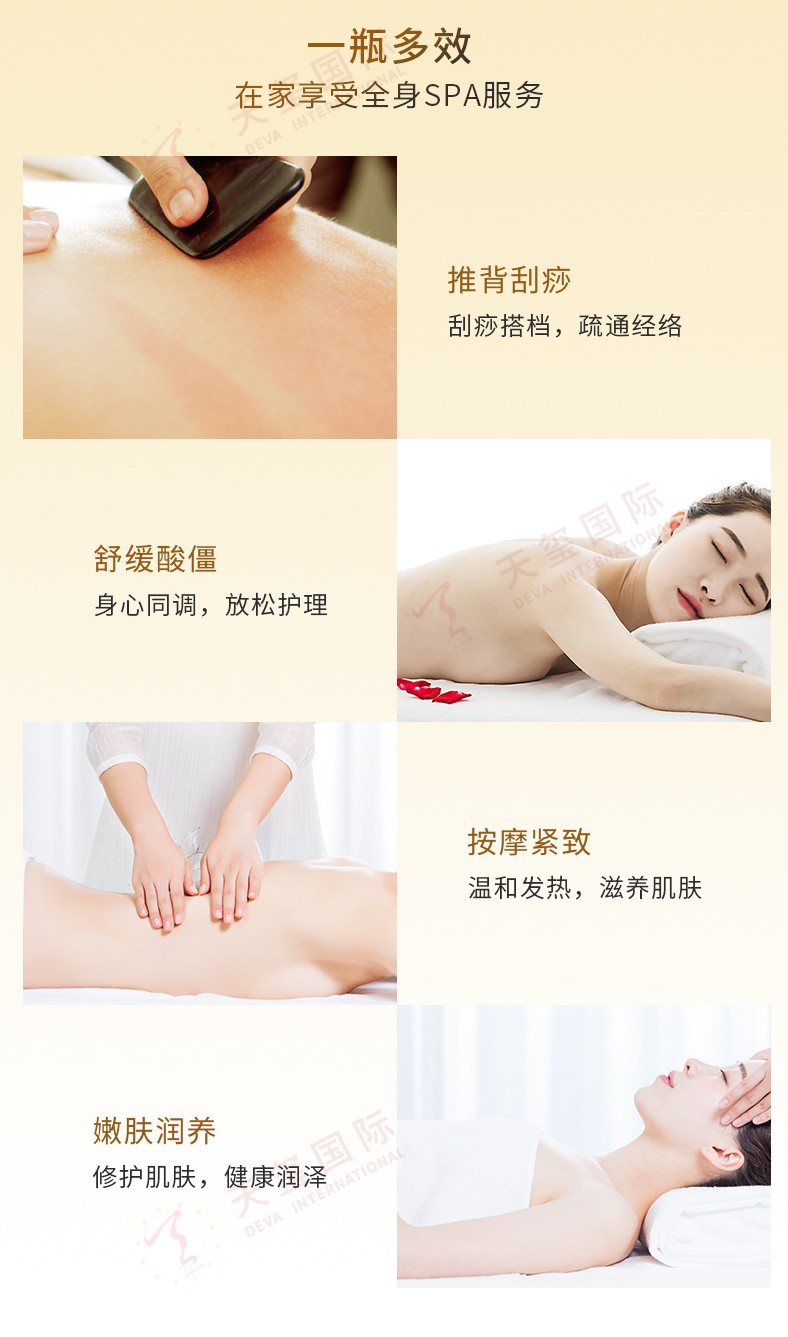 核心功效:放松护理、滋养肌肤、修护肌肤、疏通经络