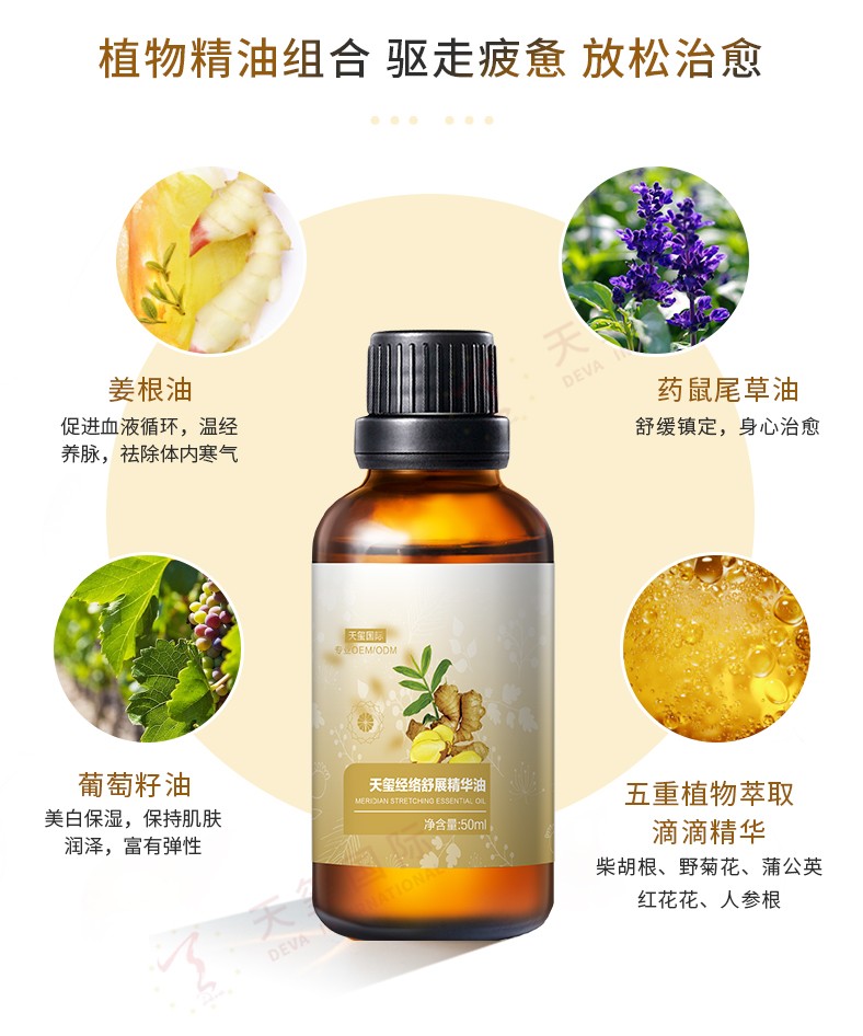 产品名称:经络舒展精华油-热推养生精油代加工,植物萃取,舒缓减压